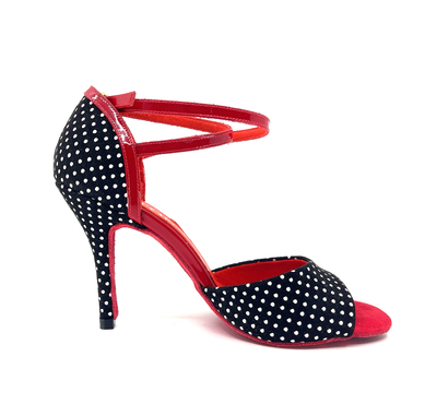 DOTTELLA | Geltony Handmade Argentine Tango Shoes – Polka Dots, Passion & Timeless Playfulness Bringing vintage spirit to the modern stage, DOTTELLA offers a look that's both energetic and elegant with its black and white polka dot surface and fiery red details. Crossed ankle straps...