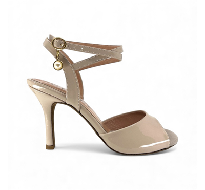 CARMEN | Geltony Handmade Argentine Tango Shoes – Nude Patent Elegance & Pearl Charm