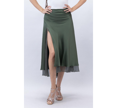 Flattering & Klosh Cut Satin Double Layer High Waist Waist Size 0: 68 cm Size 1: 72 cm Size 2: 76 cm Size 3: 80 cm Size 4: 85 cm Front Lenght 72 cm Back Lenght 82 cm Back Slit 43 cm    Back Slit 43 cm