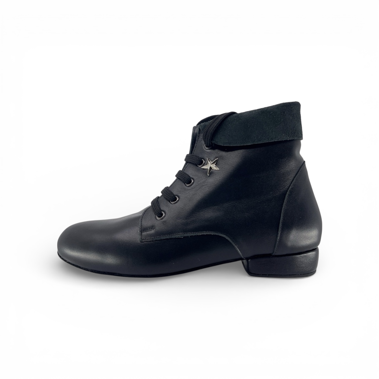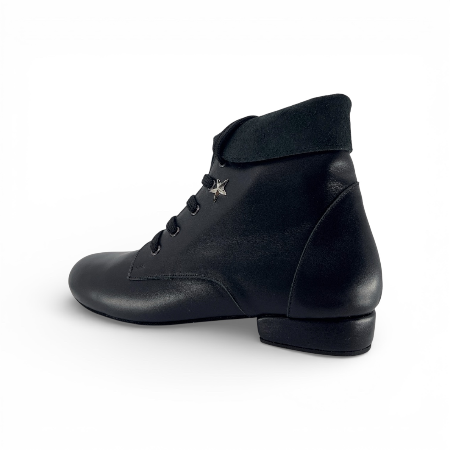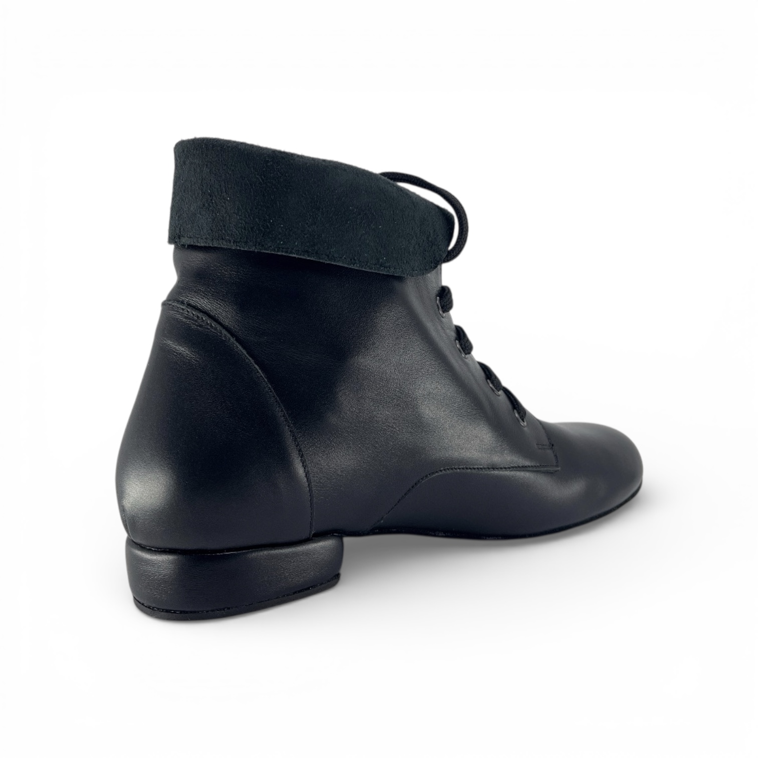 The defining element of this version is its convertible ankle collar. The upper section of the boot can be worn upright for a structured classic tango look, or folded down to reveal the suede collar detail for a more relaxed and expressive style. This adaptable design allows dancers to personalize both comfort and visual character.