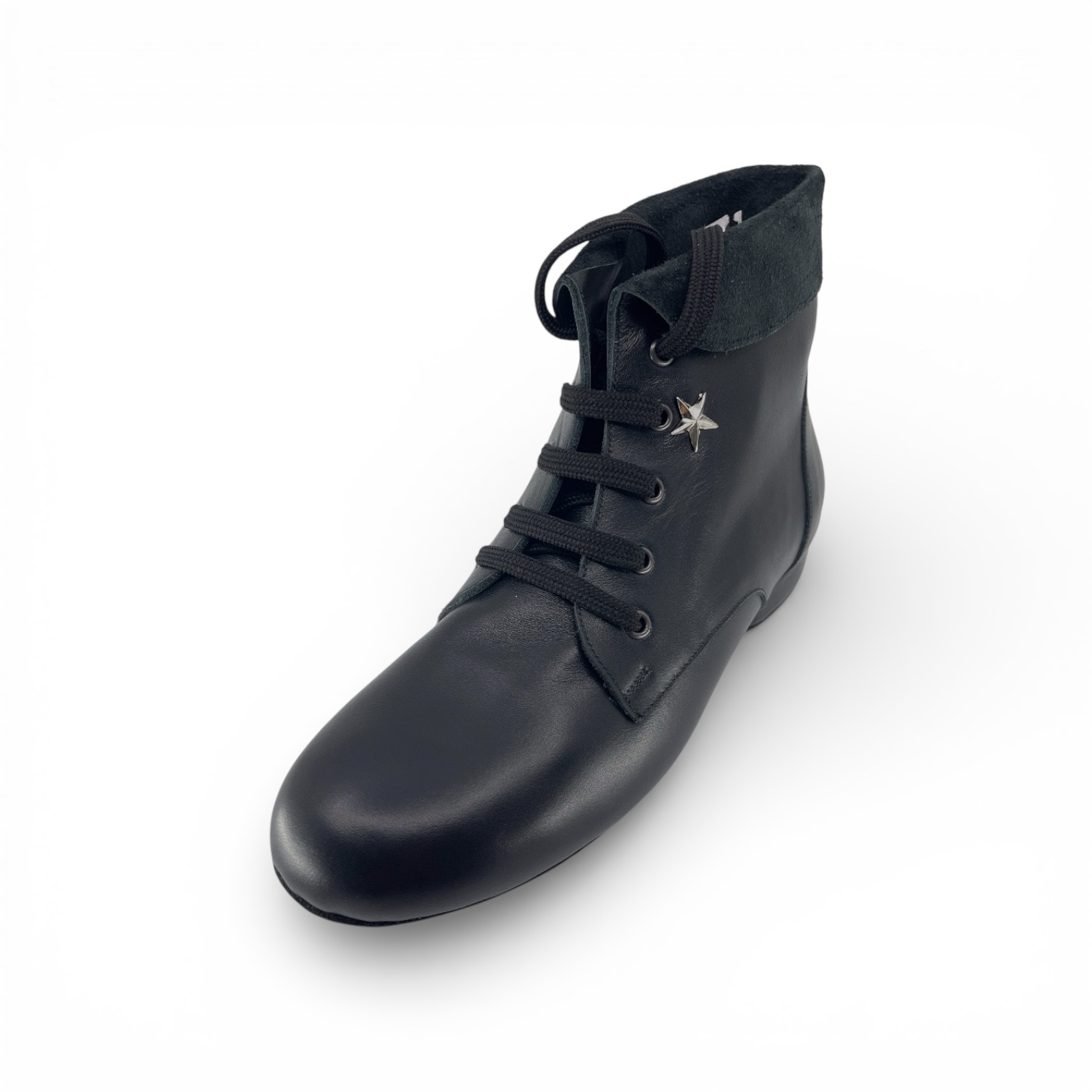 Crafted from ultra-soft matte black genuine leather, BELLA is a refined unisex Argentine tango boot created for dancers who value flexibility, balance, and timeless design. Minimal yet expressive, the silhouette adapts naturally to both masculine and feminine dance styles.