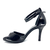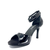 The deep black patent leather surface reflects light with a sharp and elegant shine, while the clean open-toe silhouette and double ankle straps create a powerful yet refined stance.