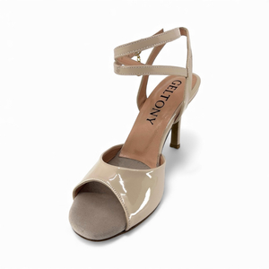 CARMEN | Geltony Handmade Argentine Tango Shoes – Nude Patent Elegance & Pearl Charm