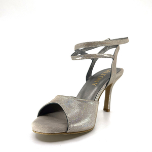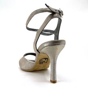 A mesmerizing blend of soft silver shimmer and refined craftsmanship… ARGENA embodies elegance, light, and timeless sophistication. With its delicate ankle strap and open-toe silhouette, this model enhances both security and femininity, turning every step into a graceful statement.