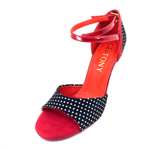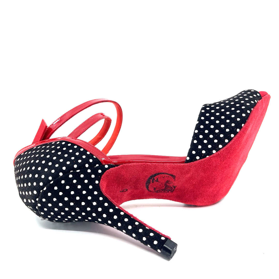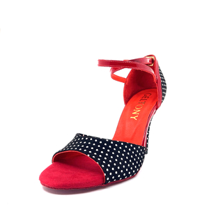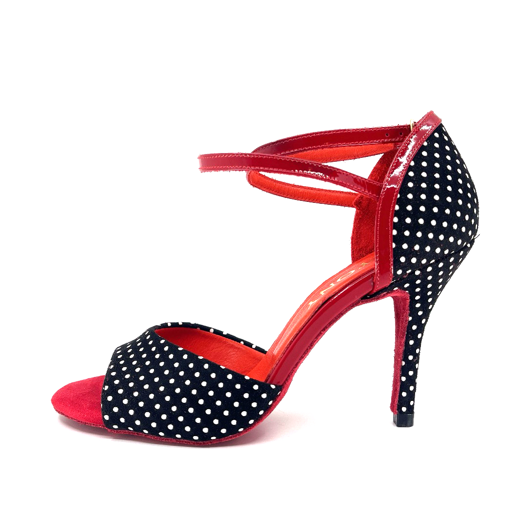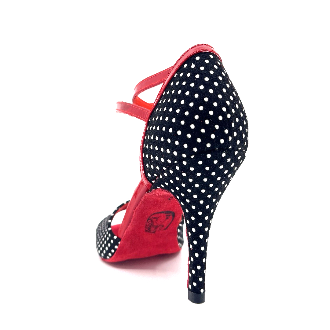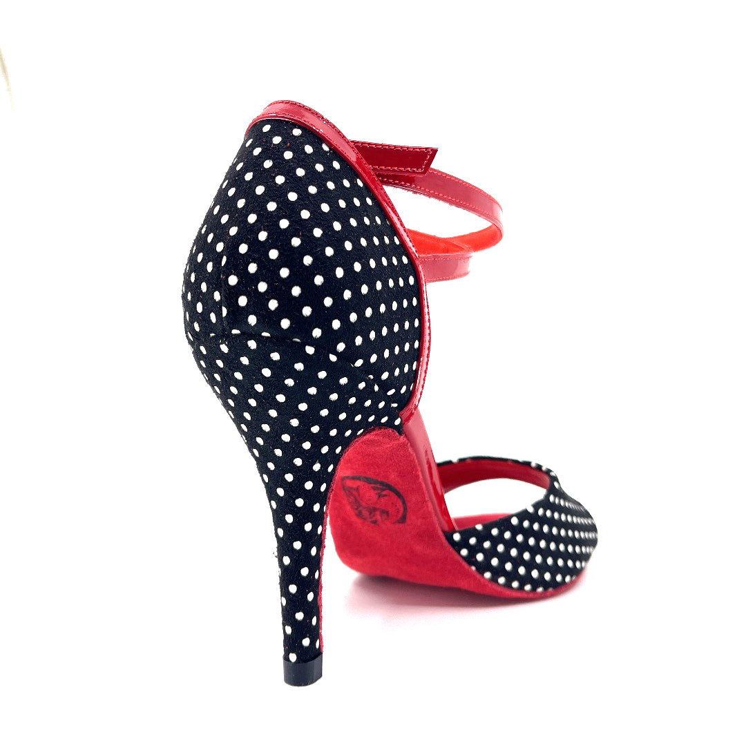 Bringing vintage spirit to the modern stage, DOTTELLA offers a look that's both energetic and elegant with its black and white polka dot surface and fiery red details.