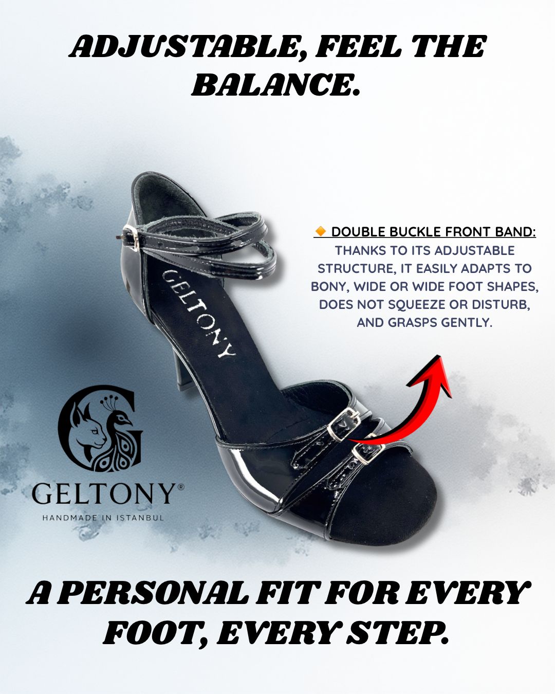 LAVENORA | Geltony Handmade Argentine Tango Shoes – Adjustable Black Patent Elegance